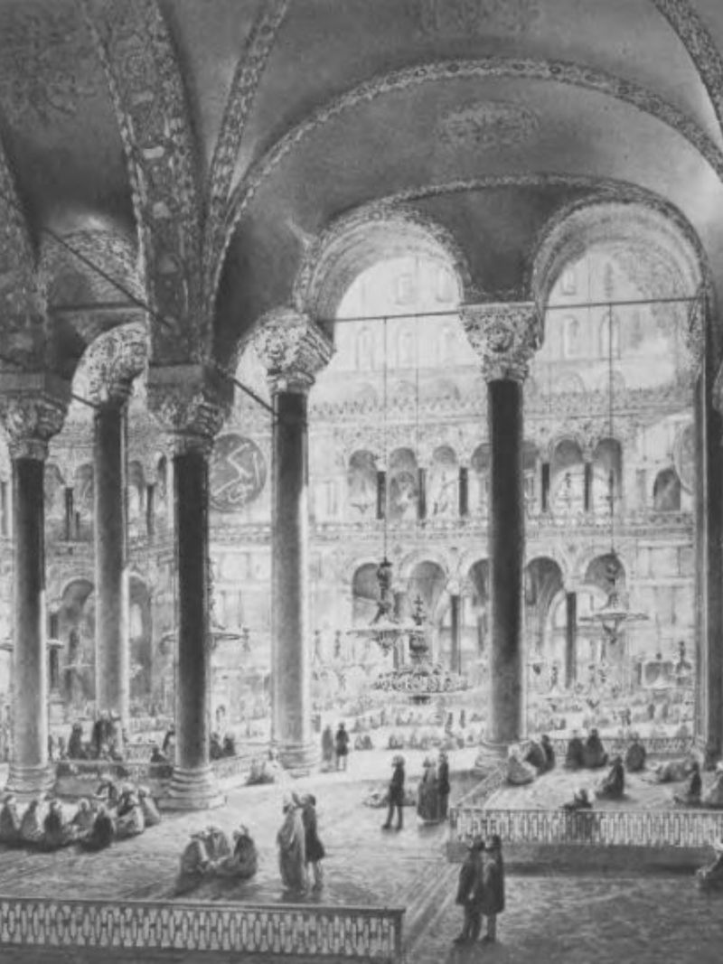 Возведение Собора Святой Софии, посвящённого Премудрости Божией, стало личной амбицией византийского императора Юстиниана I. Его замыслом было создание не просто главного храма христианского мира, а архитектурного чуда, не имеющего аналогов. Для воплощения этой грандиозной идеи были привлечены лучшие умы эпохи: математик Исидор Милетский и инженер Анфимий Тралльский. Их предыдущим совместным проектом стала церковь Святых Сергия и Вакха, известная как Малая София, которая послужила важным творческим экспериментом перед возведением великого собора.