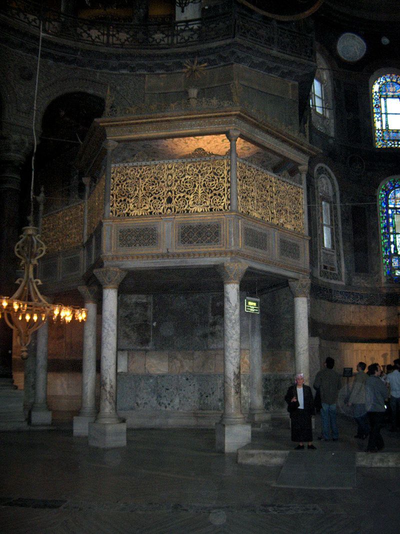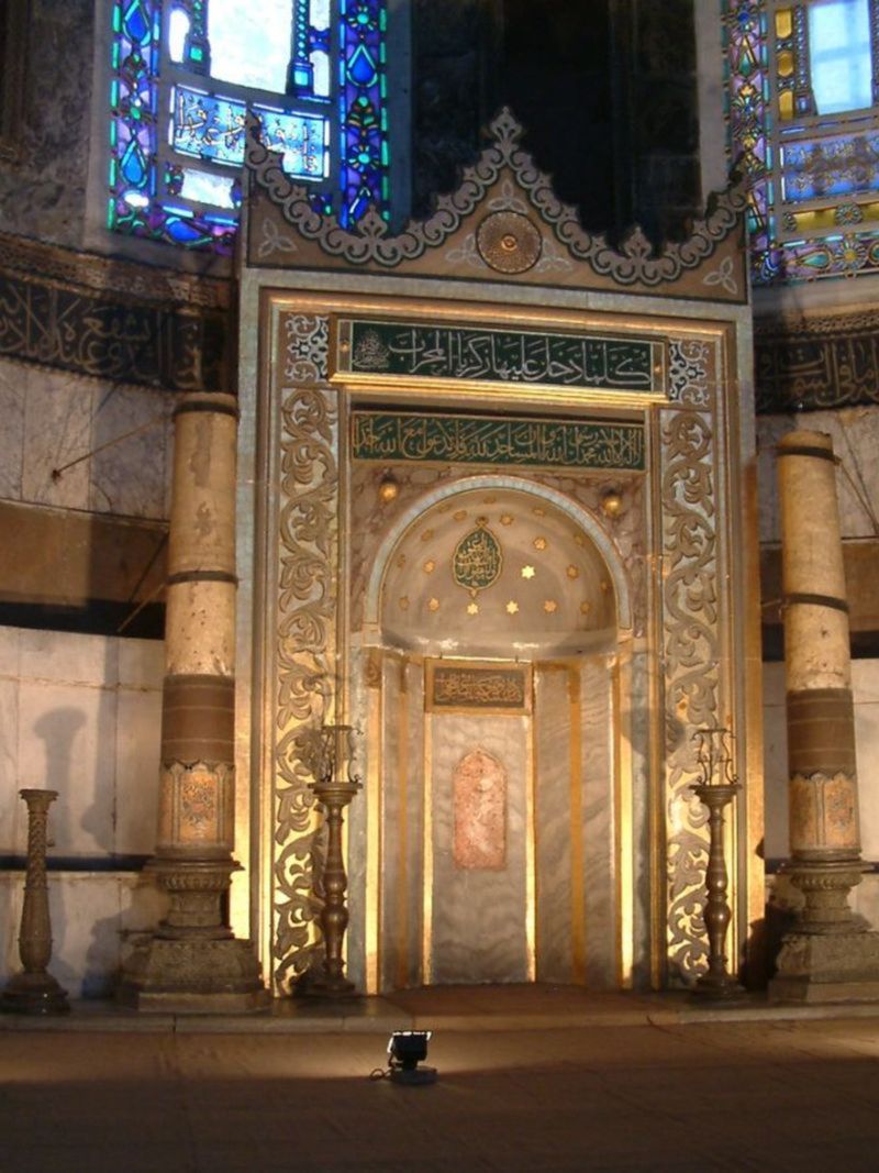 Переломный момент в судьбе святыни наступил в 1453 году, после завоевания Константинополя османами. Султан Мехмед II Фатих распорядился преобразовать собор в мечеть, ознаменовав начало нового, почти пятивекового этапа в его истории. Последняя открытая христианская служба прошла здесь в майскую ночь падения города, после чего символом здания стал исламский полумесяц.
