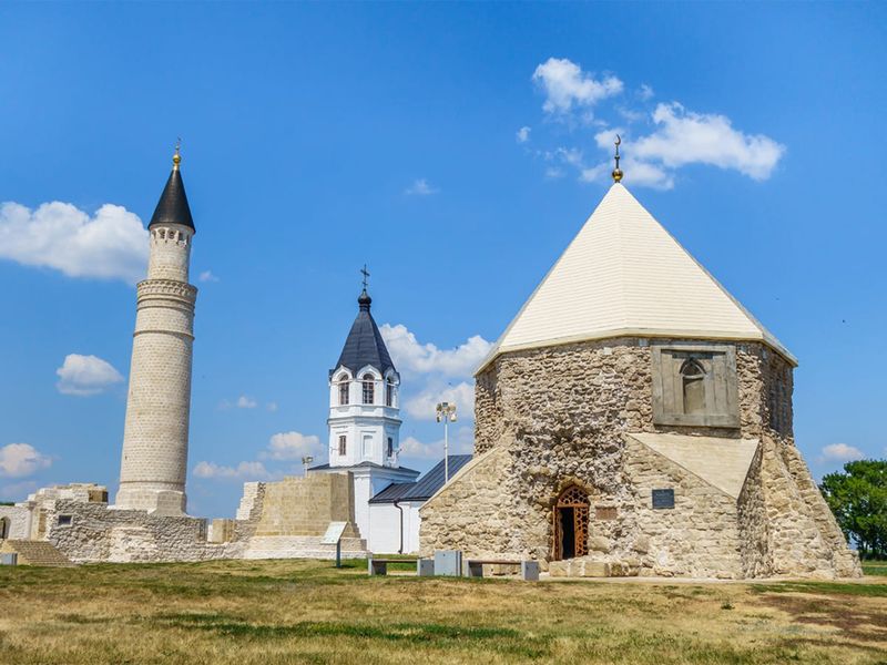 Помимо древних руин, которые приходится внимательно рассматривать и домысливать, в Болгаре есть и абсолютно новые сооружения. Их возвели не из пустого тщеславия, а с одной благой целью — помочь нашему воображению воочию увидеть былой масштаб и величие древнего города, представив, как же всё это выглядело несколько столетий назад.
