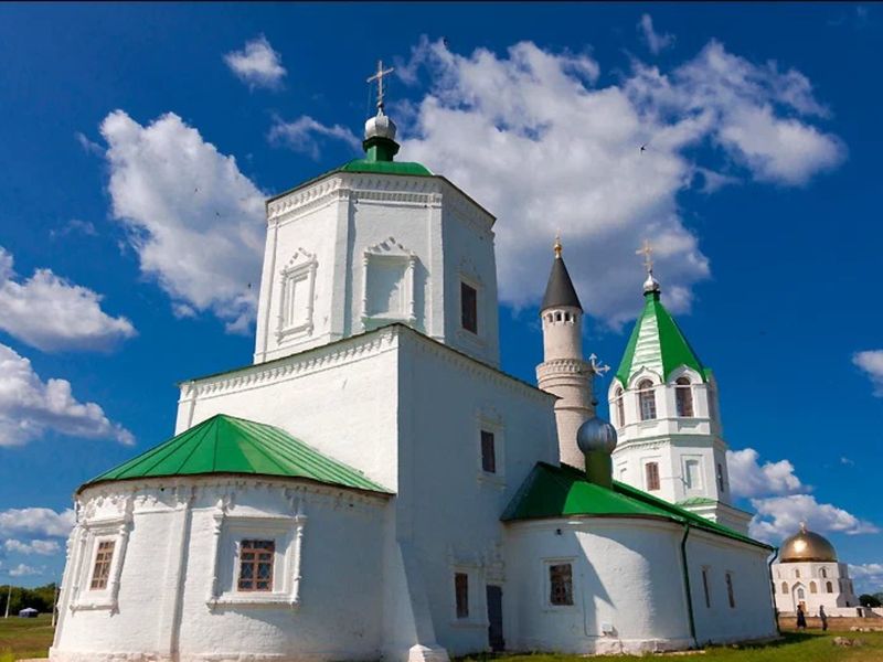 Этот православный храм, почти вплотную примыкающий к главной мечети, служит наглядным примером переплетения культур. Его построили монахи в честь визита в город Петра Великого. Со временем монашеская братия перебралась в Чебоксары, церковь обветшала, а обрушение первого Большого минарета и вовсе повредило её колокольню. В одна тысяча восемьсот шестьдесят втором году здание практически отстроили заново. При советской власти здесь и вовсе устроили склад. Сегодня отреставрированную церковь не используют для служб, а разместили в ней музей русской культуры, рассказывающий об удивительной истории православия на мусульманских землях.