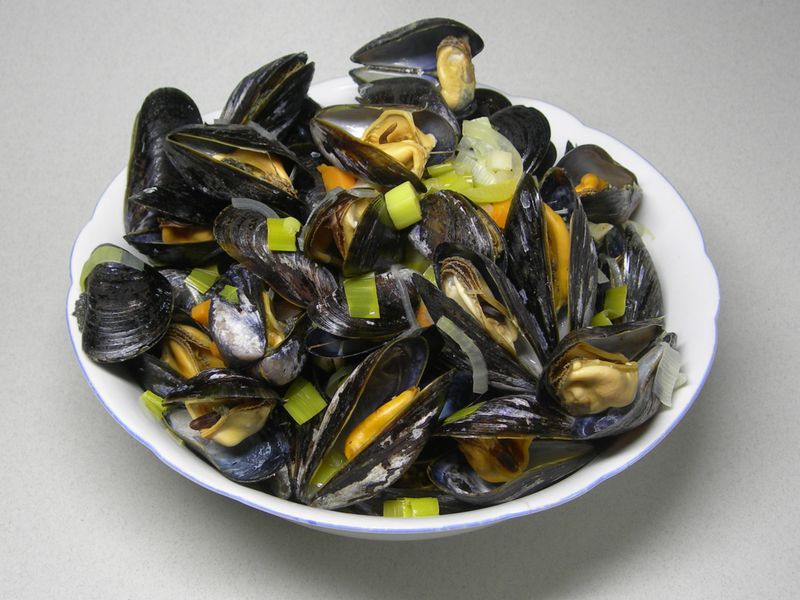 - мидии в чесночном соусе (300 руб.); салат из папоротника с орехами (веган, хрустящий — 200 руб.).