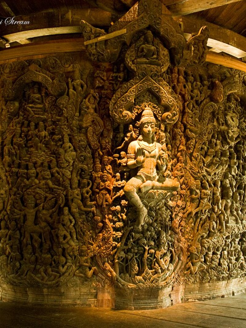 Незавершённость лишь усиливает его очарование, позволяя гостям стать свидетелями кропотливой работы резчиков по дереву. Посетители наблюдают, как «истины» — философские постулаты, лежащие в основе концепции храма, — буквально рождаются на их глазах.