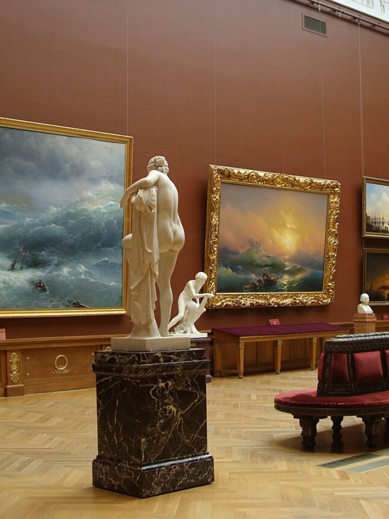 Загляните в Русский музей, где собрана крупнейшая в мире коллекция отечественного искусства. В экспозиции представлены работы Андрея Рублёва, Фёдора Рокотова, Ореста Кипренского, Карла Брюллова (включая знаменитое полотно «Последний день Помпеи»), Ивана Айвазовского, Ильи Репина, Виктора Васнецова и Бориса Кустодиева. Экспозиция охватывает все этапы: от древнерусских икон XII столетия до произведений советской эпохи.