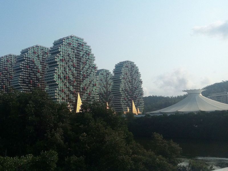 Площадь в заливе Ялунвань — премиум-зона: duty-free молл с Gucci, Dior, Rolex (цены на 30% ниже материкового Китая), кино IMAX (фильмы на английском), фудкорт с мишленовскими кафе (суши, стейки).