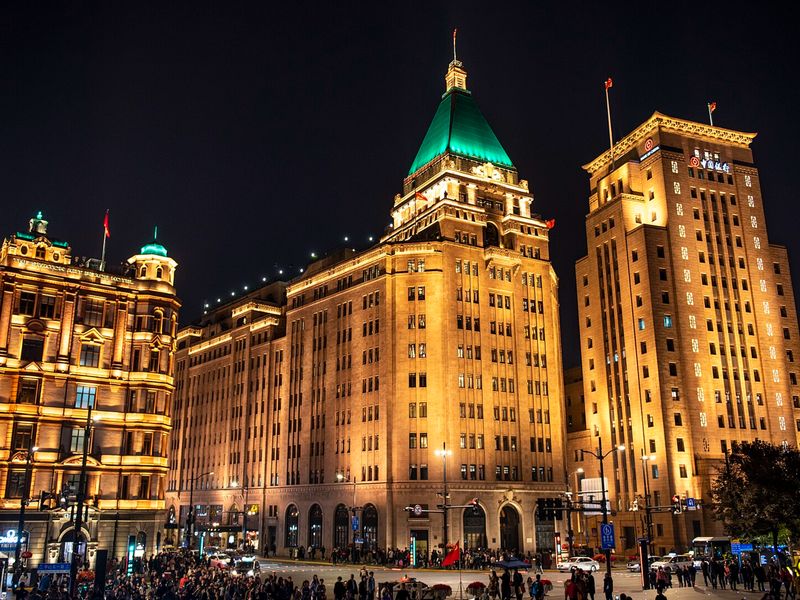 🔸Старт у Fairmont Peace Hotel — шедевра ар-деко 1929 года с джаз-баром и бронзовыми драконами у входа, — прогулка 1,5 км на север к Customs House 1927 года с его знаменитыми часами «Big Ching».
