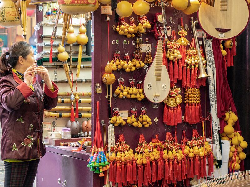 🔸Витрины мигают LED-огнями в ритме K-pop и традиционных мелодий, скидки до 50% на шёлковые пижамы с вышивкой Года Лошади, наборы чая Пуэр в подарочных коробках с золотыми монетами и нефритовые подвески как талисманы энергии.