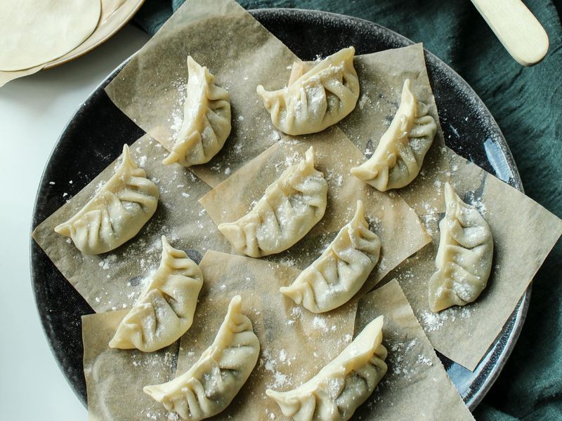 - Всё начинается с замеса: 400 г пшеничной муки высшего сорта смешивают с 200 мл тёплой воды и щепоткой соли — тесто должно быть эластичным, как кожа скакуна, по традиции династии Хань (206 г. до н.э. – 220 г. н.э.), когда пельмени спасали от зимнего голода.
