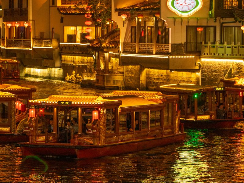 Рынки у каналов предлагают рисовые лепёшки нянгао для «высокого роста» в новом году, жареные креветки на палочках и сладкий чай с османтусом.