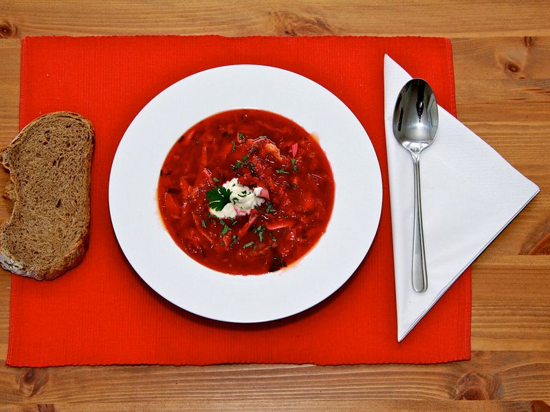 - Начните с горячего: крымский борщ с пампушками и чесночным соусом (250 рублей) — густой, с кусочками говядины, свёклы и сметаной, согревает мгновенно.