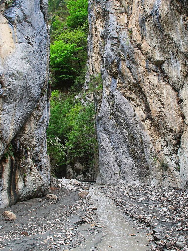 Узкое, извилистое ущелье, словно прорезанное в скалах. Его высота достигает ста пятидесяти метров, а ширина в некоторых местах сужается всего до двух. Стены из жёлтого известняка и глины создают особый микроклимат — здесь даже в жару царит прохладный полумрак. Прогулки возможны исключительно в засушливый период.