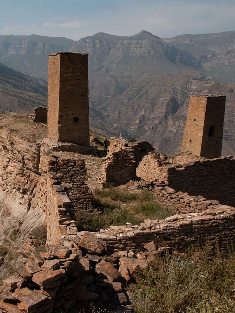 Загадочные руины средневекового укреплённого селения на краю пропасти. Сохранившиеся боевые башни имеют характерный наклон и сужение к вершине. На камнях можно разглядеть древние петроглифы и символы, значение которых до конца не разгадано.