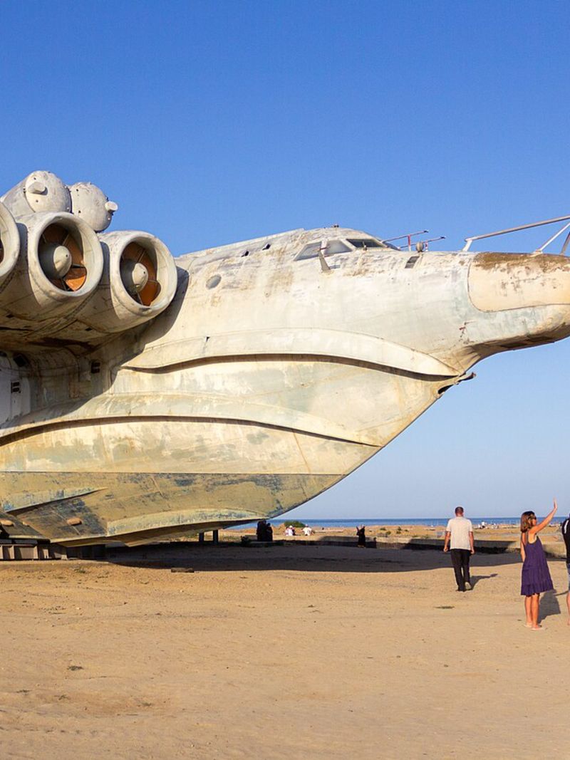 Экраноплан «Лунь» — удивительный артефакт советской инженерной мысли, не имеющий прямых мировых аналогов. Этот гибрид корабля и самолёта, вооружённый ракетами, за свои габариты получил прозвище «Каспийский монстр». Его вес приближается к четырёмстам тоннам, а длина превышает семьдесят метров. Сегодня этот исполин находится на вечной стоянке на берегу Каспийского моря в Дербенте.