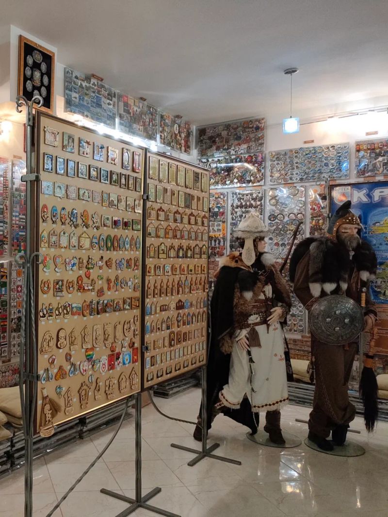 Что примечательно, помимо магнитов, в этом необычном пространстве можно увидеть и настоящие археологические артефакты, обнаруженные в окрестностях города.