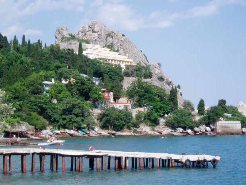 Именно эта панорама, захватывающая посёлок, море и скалы, чаще всего украшает сувенирные магниты и открытки.