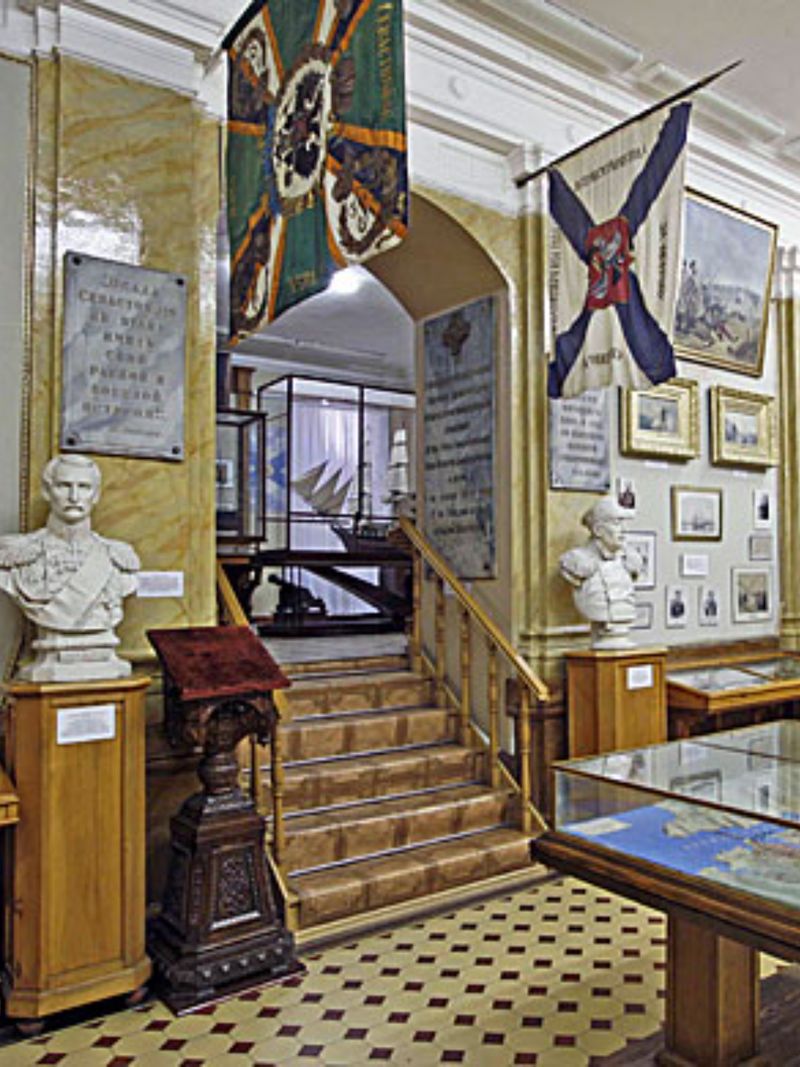 Для этой сокровищницы флотской славы в 1869 году возвели особое здание в духе строгой классики, которое украсили особым «севастопольским знаком» — перекрещённым числом 349, напоминающим о количестве дней легендарной первой обороны.