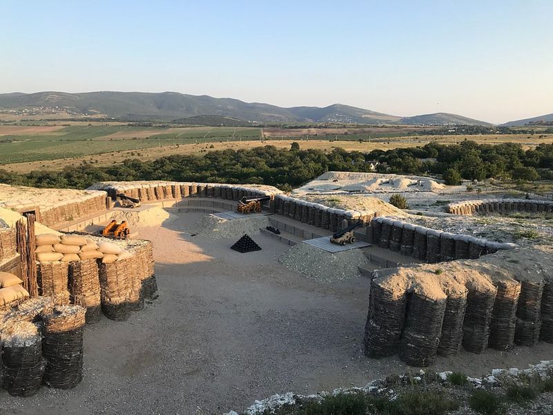 Для наглядности здесь в натуральную величину выстроили три исторические площадки: усадьбу генуэзского аристократа Локо Чимбали, римский военный лагерь и укрепления времён Крымской войны.
