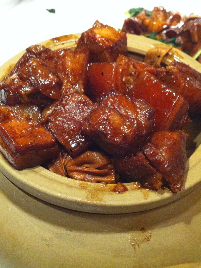 Это классическое блюдо, которое стоит искать в ресторанах старого района Цибао. Его главный герой — свинина, которая долго томится в соусе на основе соевого соуса и рисового вина. К мясу добавляют имбирь, чеснок и комплекс пряностей, что создаёт насыщенный, сладковато-солёный вкус и нежнейшую текстуру.