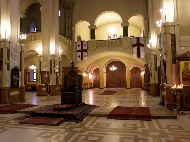 Собор Св. Троицы (2004, метро Самготское, 1 лари, 20 мин. от Руставели): мозаики 16 000 м², колокольня 60 м. Построен на пожертвования народа, символ возрождения Грузии после советского периода, с реликвиями святой Нино, крестительницы в IV веке.