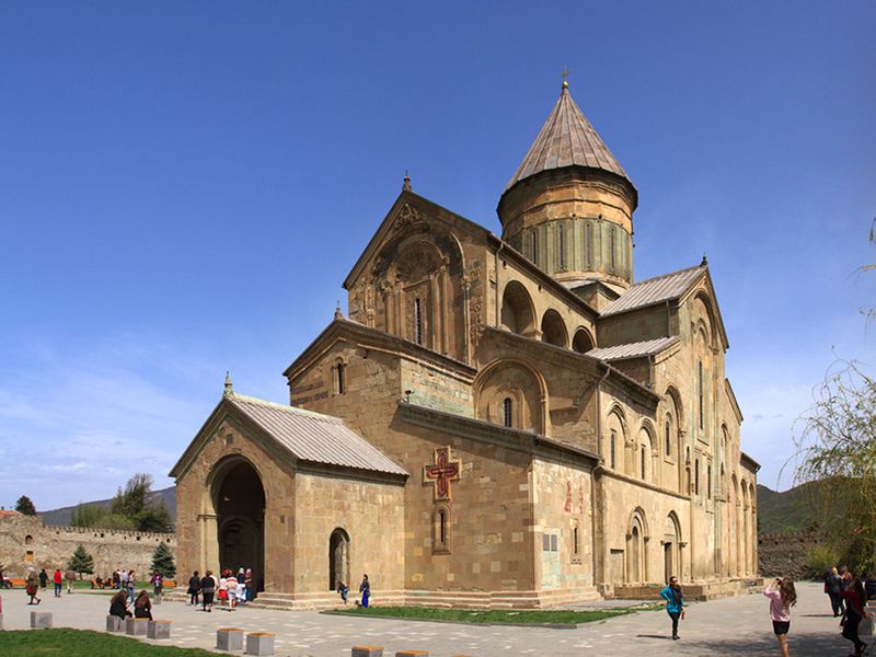 Светицховели (XI век): главный собор Мцхеты, 10 мин. от станции (пешком или такси 5 лари). Построен на месте церкви IV века, где хранится Хитон Христа — бесшовная туника, по легенде, привезенная из Иерусалима. Здесь короновали всех грузинских царей с XI века, фрески с библейскими сюжетами и царями охватывают 1000 лет.