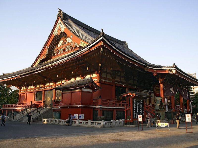 Легенда рассказывает, что храм основали два рыбака, нашедшие статую Каннон в реке Сумида, и он стал местом исцелений — паломники бросают монеты в курительницу для удачи и здоровья.