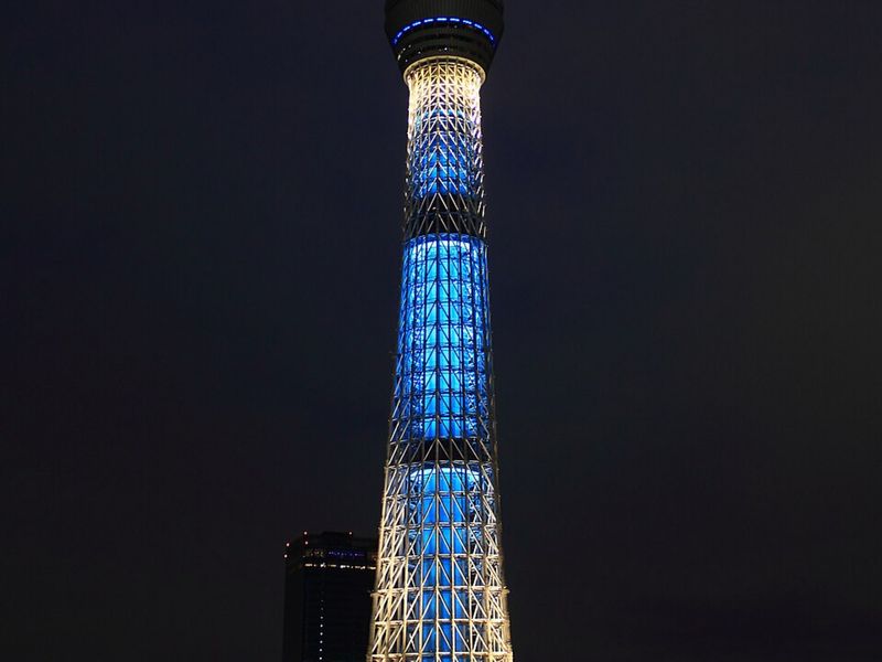 Tokyo Skytree — футуристическая башня высотой 634 м, открытая в 2012 году, вторая по высоте в мире после Бурдж-Халифа, с лифтом на скорость 600 м/мин. С смотровой на 350 м открывается 360° панорама Токио, включая реку Сумида, районы и в ясный день — снежную Фудзи.