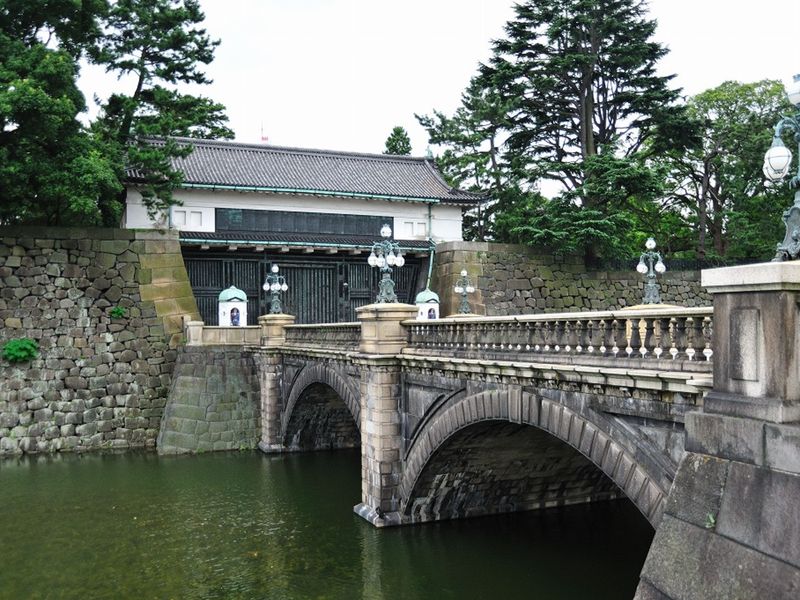 Императорский дворец — официальная резиденция императора Японии с 1868 года, окружённая рвом, толстыми стенами и обширными садами на 1,15 км² в центре Токио. Сады с 1600 деревьями, включая сакуру и сосны, и знаменитый мост Нидзюбаси — икона с отражениями в воде.