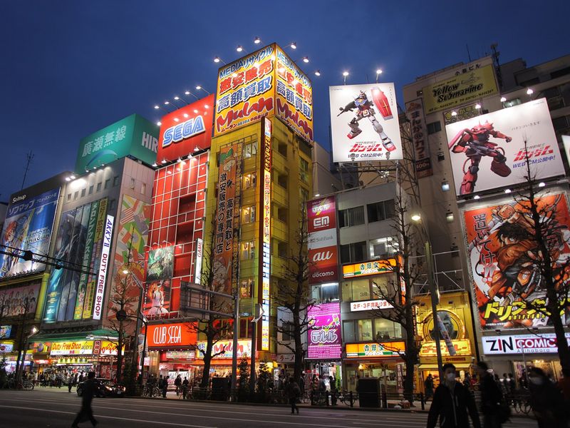 Акихабара — «электрический город» Токио с более чем 1000 магазинов электроники, аниме и мэйд-кафе, где улицы светятся неоном, а витрины заполнены фигурками и гаджетами. Район стал центром отаку-культуры в 1970-х, когда здесь появились первые магазины манги.
