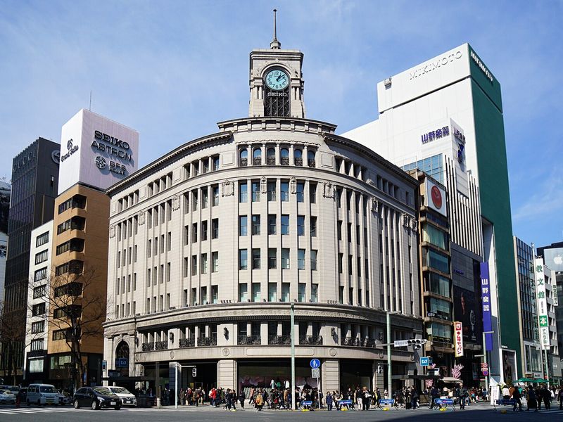 🔸Можно найти часы с курантами на Wako Building, театр Кабуки-дза с традиционными представлениями за 2000–5000 иен. Посвятите 3 часа: пройдите 1 км по Чуо-дори, загляните в Mitsukoshi за департаментом еды. Вход бесплатный.