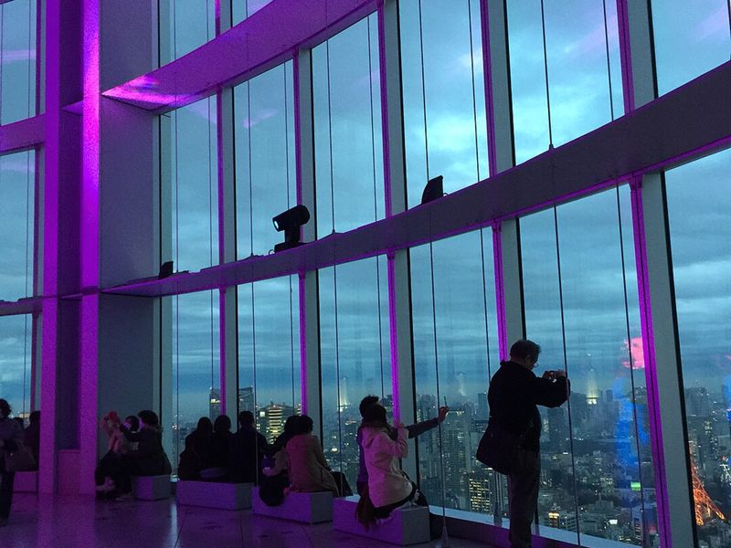 🔸Уникальность: стеклянный пол на 450 м (Tembo Galleria), где чувствуешь себя в небе, плюс ресторан с вращающимся полом и аквариум Sumida внизу за 2300 иен с 2000 видов рыб.