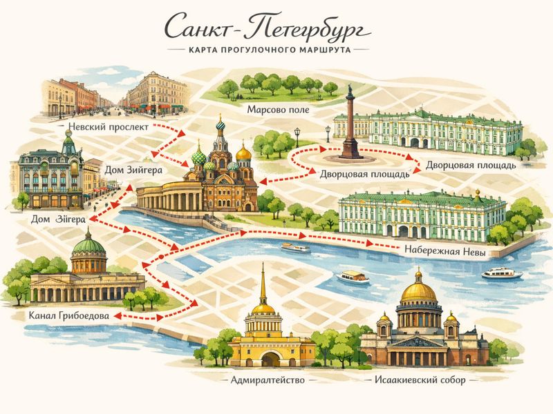Маршрут прогулки по центру Санкт-Петербурга за один день