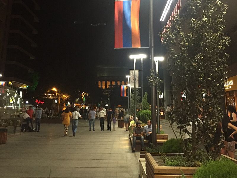💫 Атмосфера суетливая и уютная: пары у фонтанов, семьи в кафе, шопинг в магазинах с армянскими винами — 1 час, где Ереван показывает своё лицо XXI века, балансируя между традицией и модой.