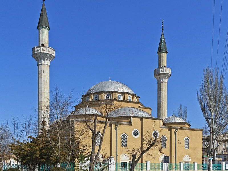 Под этим названием скрывается целый комплекс сакральных сооружений крымских караимов — небольшого, но очень значимого для истории города народа. Жёлтые здания с нарядными белыми колоннами в самом сердце Евпатории сразу приковывают взгляд.