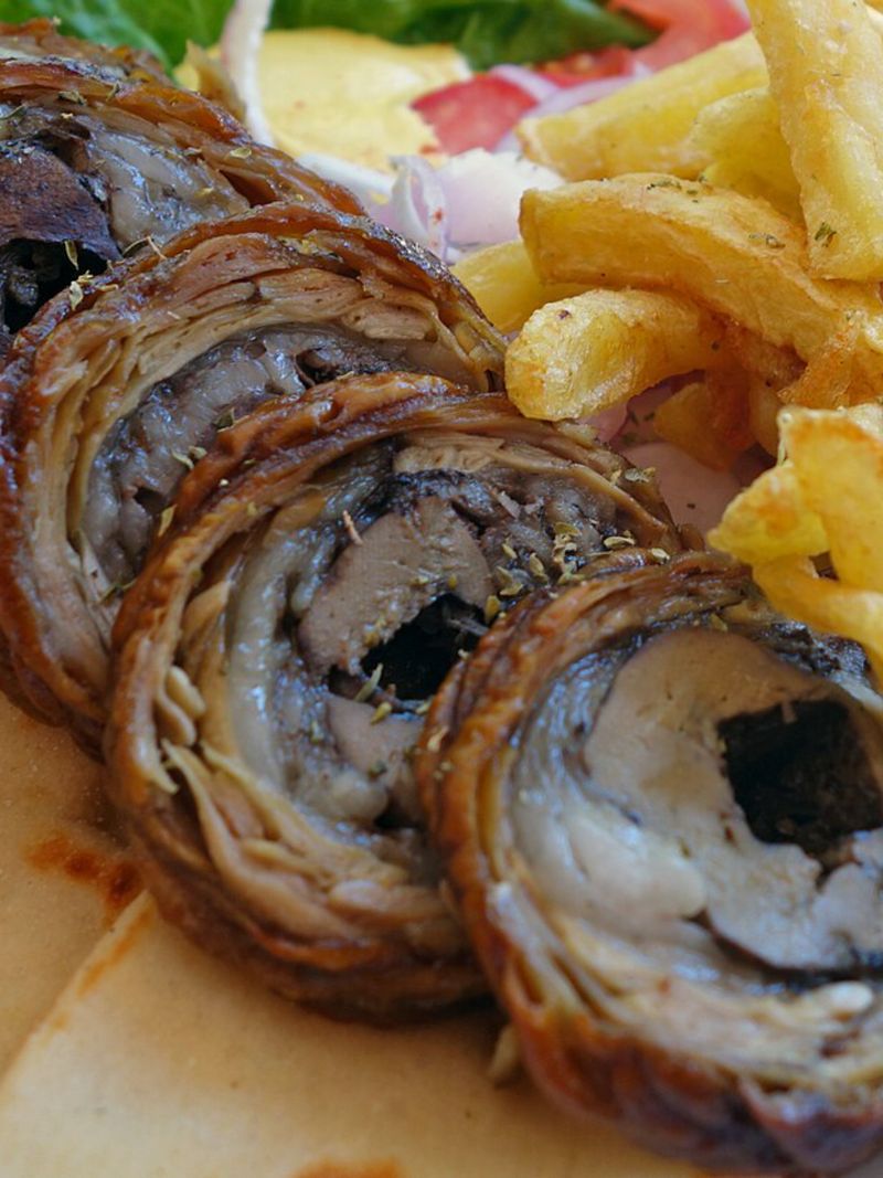 Этот пункт меню — проверка на профпригодность для гурмана. Многие туристы пасуют перед составом: бараньи потроха (печёнка, лёгкие, сердце), туго завёрнутые в бараний же кишечник. Эту конструкцию медленно обжаривают на вертеле до хрустящей корочки. Готовый кокореч нарезают ломтями, смешивают с душистыми травами и подают с овощами или заворачивают в лаваш. Блюдо пользуется бешеной популярностью у местных — в хорошей кокоречнице за порцией выстраивается очередь.