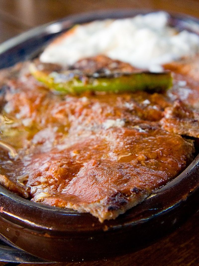 Технология его создания напоминает алхимию: нежнейшие ломтики ягнёнка, снятые с вертела, заливаются томатным соусом, щедро поливаются растопленным сливочным маслом и венчаются прохладной шапкой йогурта. Это сочетание горячего и холодного, острого и нежного производит эффект взрыва. На улице вам завернут это богатство в лепёшку, а в ресторане подадут на тарелке с овощами или картофелем, чтобы вы смогли насладиться каждым компонентом этого великолепия.