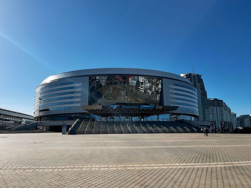 🔸Минск-Арена — огромный крытый комплекс, дорожка 400 м, трибуны на 3000, фигурное катание и хоккей; зимой массовые катания с DJ (прокат коньков 6 руб./час, заточка 2 руб., шкафчики).