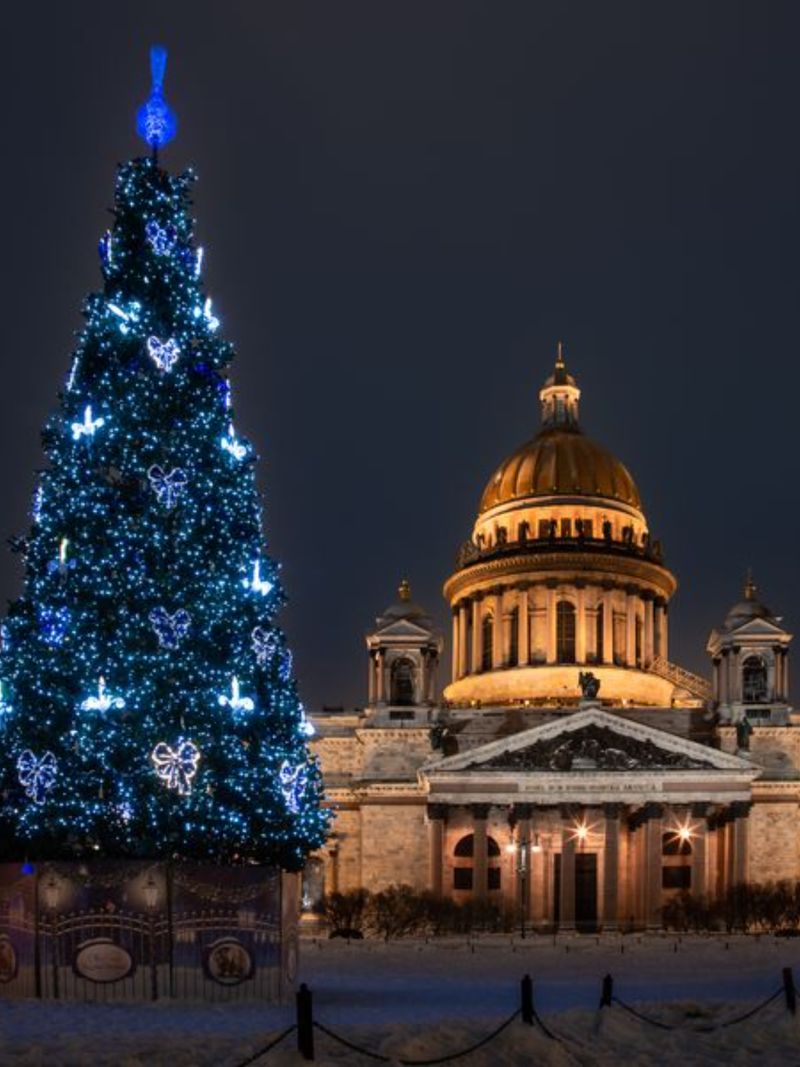 Новый год превращает Петербург в столицу настоящей зимней сказки. Главная ёлка страны устанавливается на Дворцовой площади, где разворачивается грандиозное празднество с музыкой, ледовыми шоу и фейерверком.