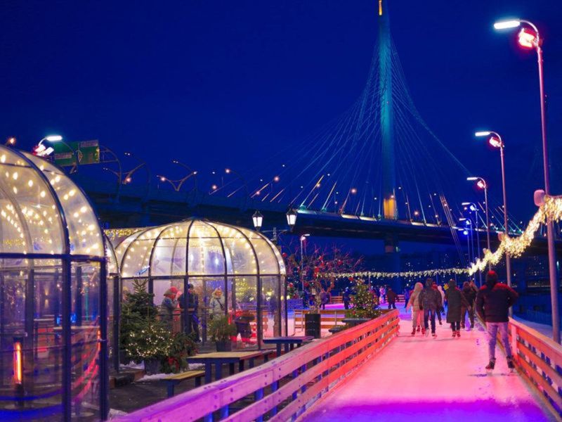 В Новой Голландии каток дополняется разнообразными развлечениями и городскими панорамами.