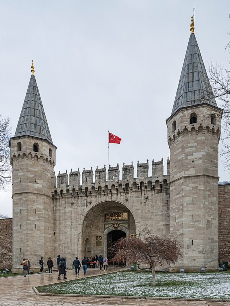 Место для будущего сердца империи султан выбрал с размахом — живописный мыс Сарайбурну, омываемый водами Босфора, с панорамой на бухту Золотой Рог и Мраморное море. Строительство развернулось прямо на руинах византийского императорского дворца, как бы подчёркивая преемственность великих держав. К 1478 году комплекс был готов. Своё имя — Топкапы, что переводится как «Пушечные ворота», — он получил благодаря своеобразному «оповещению». Каждый раз, когда султан покидал резиденцию или возвращался в неё, гремел артиллерийский залп.
