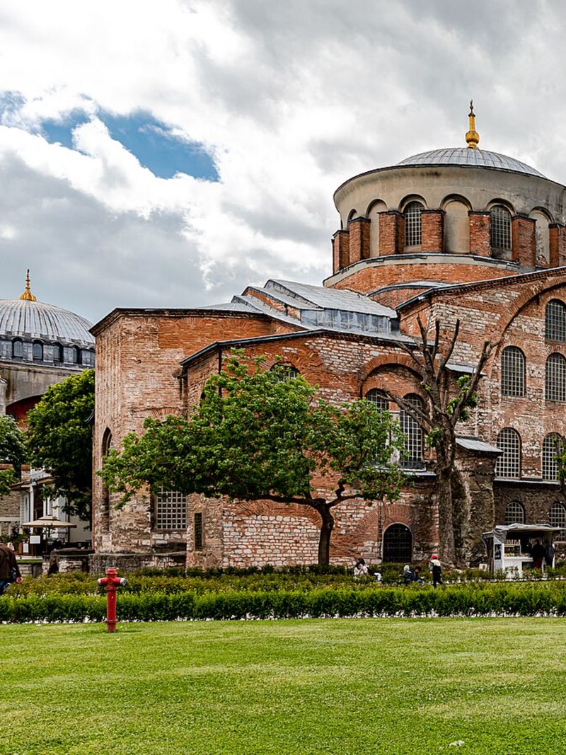 Среди ключевых построек — монетный двор, фонтан, гигантские пекарни и деревянные складские помещения. Но истинная жемчужина двора — церковь Святой Ирины, византийский храм IV века. По своим масштабам и значимости он уступает лишь Айя-Софии, с той лишь разницей, что его так и не превратили в мечеть. При османах в здании располагались казармы, а позднее — Императорский музей. Сегодня это один из ярчайших образцов византийского зодчества, где можно увидеть древние фрески, монограммы императоров и сложнейшие мозаичные орнаменты.