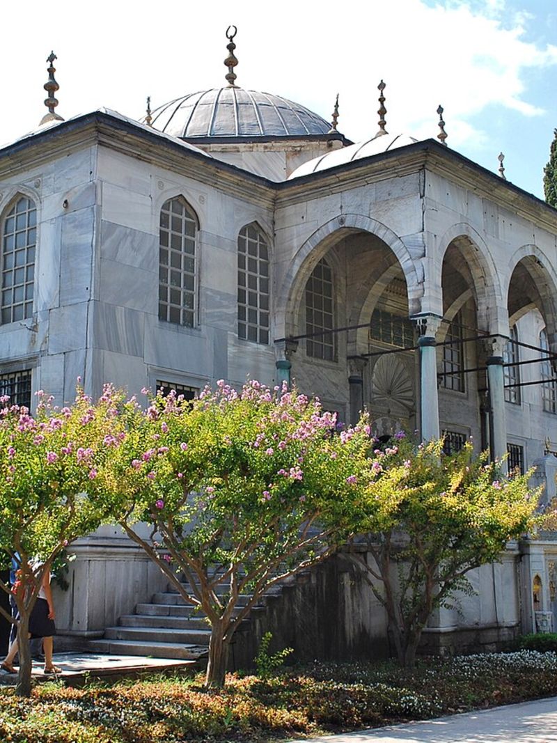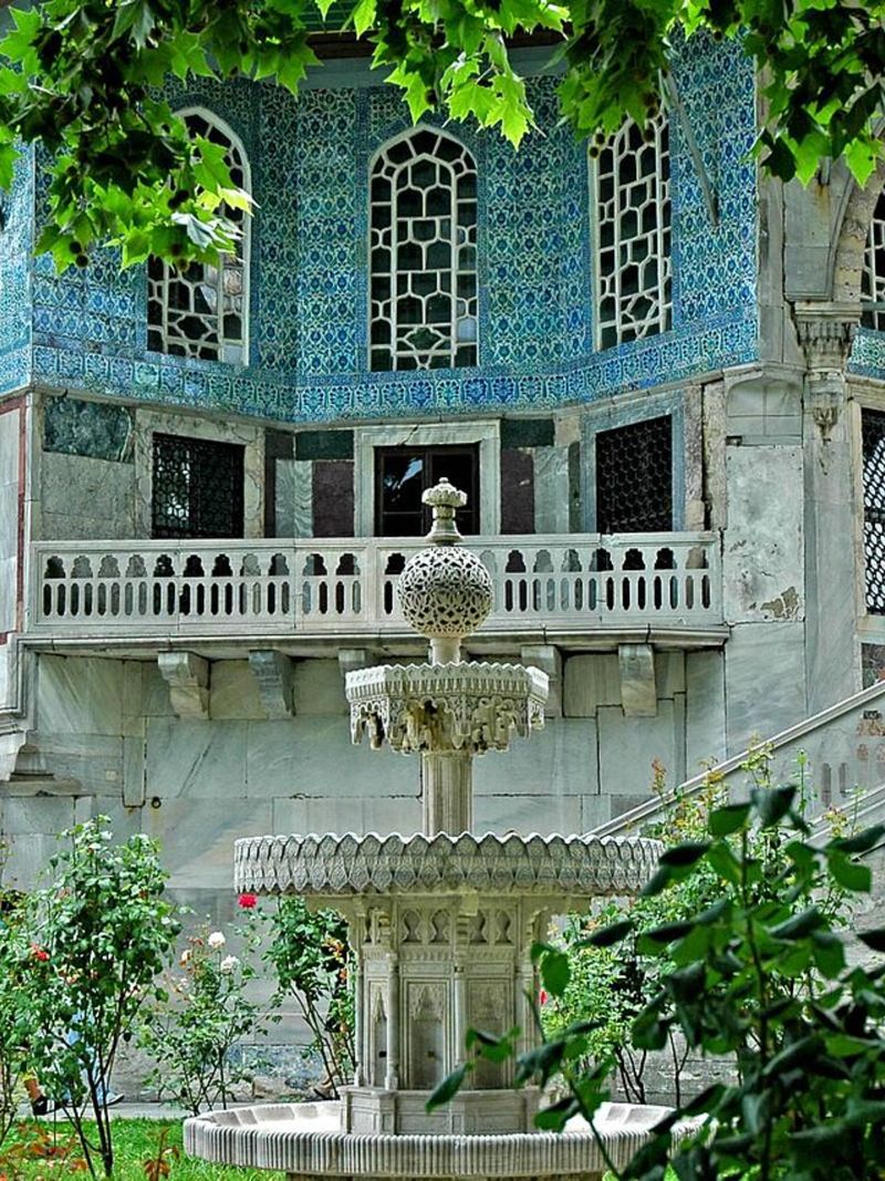 Отдельного внимания заслуживает изящная библиотека, построенная султаном Ахмедом III. Её стены облицованы знаменитой изникской плиткой, а двери и ставни инкрустированы перламутром и слоновой костью. Это место — эталон османского вкуса, дошедший до нас практически в неизменном виде.