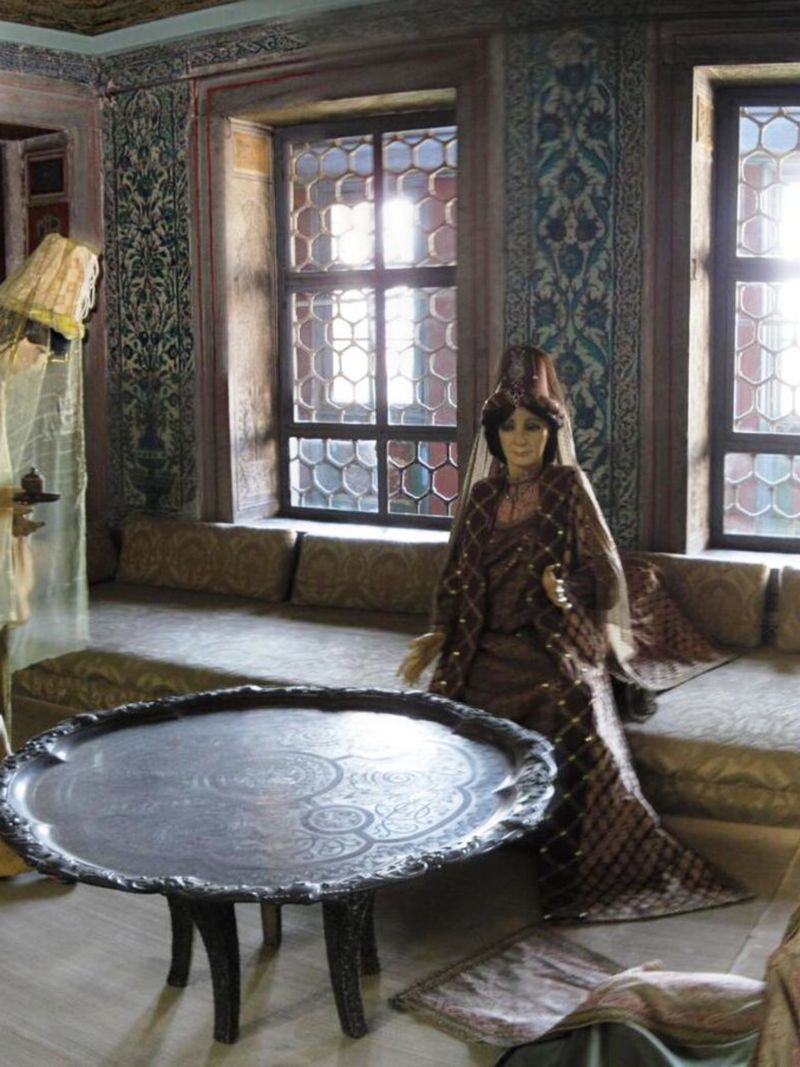 Эта знаменитая часть комплекса живёт по собственным правилам — даже сегодня для визита сюда требуется отдельный билет. Гарем, вход в который находится у подножия Башни Правосудия, был целым миром, изолированным от посторонних глаз. Лабиринт из почти трёхсот комнат, где проживало до тысячи женщин и несколько сотен слуг, чаще всего ассоциируется с Сулейманом Великолепным. Однако свой масштабный облик он приобрёл при султане Мураде III, хотя именно Роксолана (Хюррем-султан) стала первой фавориткой, которая поселилась здесь на постоянной основе.