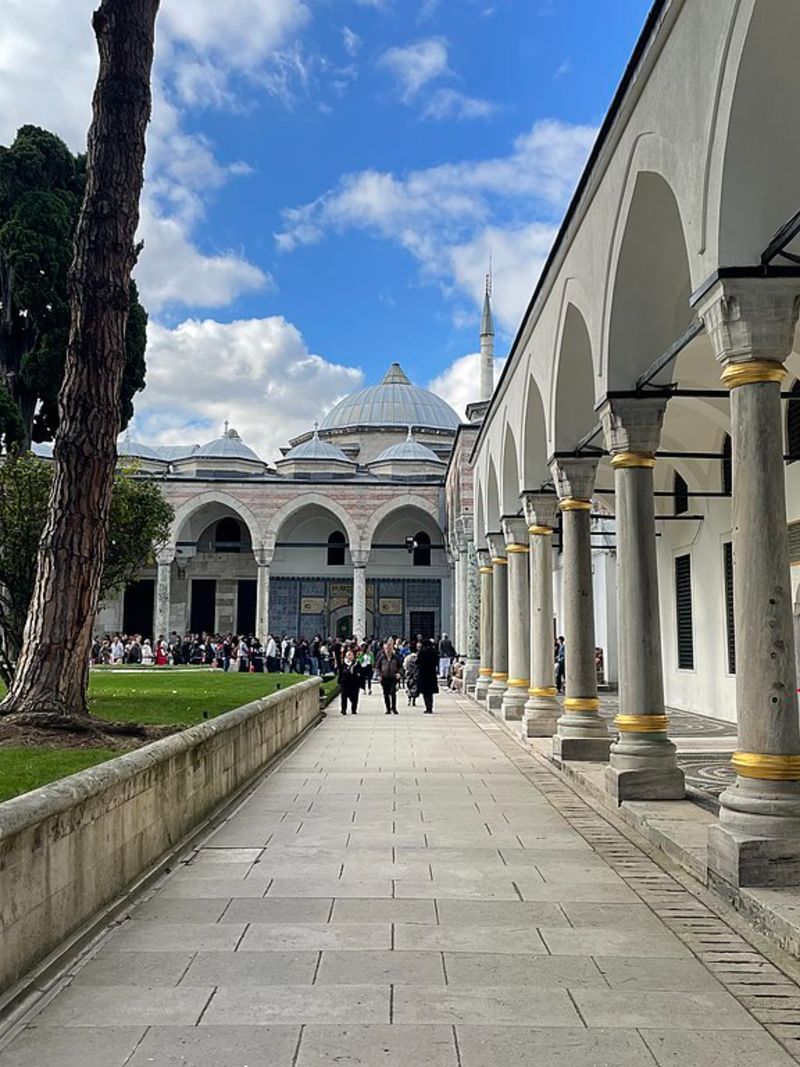 Первый двор, он же двор Янычар, занимает самую большую территорию. В османскую эпоху это было единственное место в резиденции, куда мог свободно войти любой подданный, при условии, что он не вооружён. Здесь кипела жизнь: проходили официальные церемонии, празднества и многолюдные приёмы. Сегодня дух открытости сохранился — эта территория остаётся бесплатной для посещения, не требуя музейного билета.