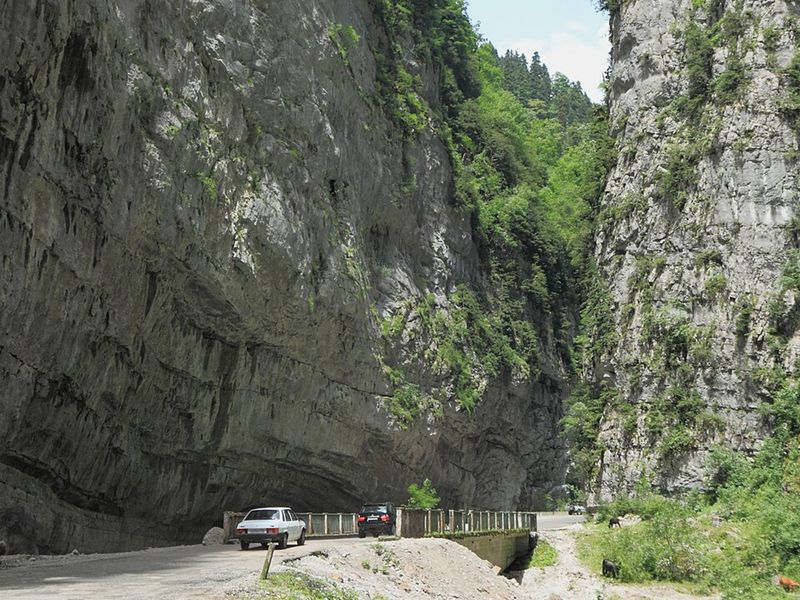 → Юпшарское ущелье (Каменный мешок) — эффектная узкая «коридорная» дорога между скалами.