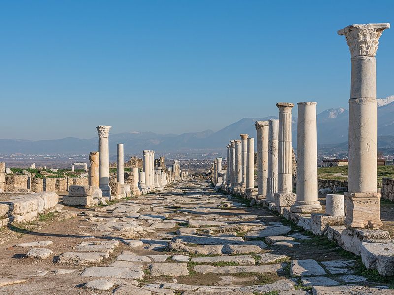 Экскурсия в Памуккале неотделима от Иераполиса — древнего города (II век до н.э.) у террас, где руины рассказывают о ликийской цивилизации. От входа в Памуккале — пешком 10 минут, а весь осмотр — 2 часа.