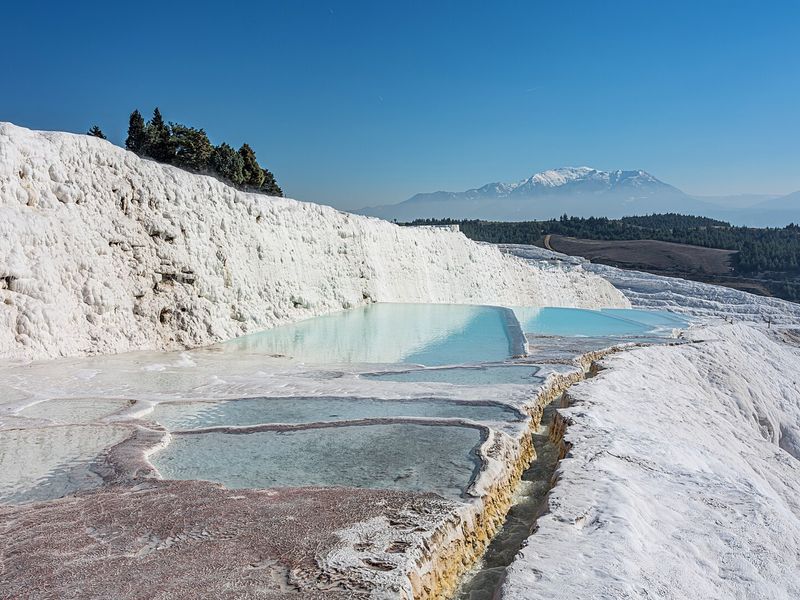 Террасы — это не просто камень: травертин формируется веками, а вода богата кальцием, делая кожу бархатной. Зимой снег на белом — уникальное зрелище, как лёд на молоке. Это комбо природы и релакса, где вы чувствуете связь с землёй.