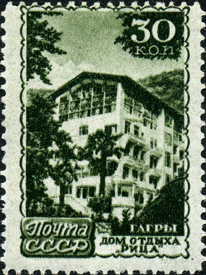 В 1946 году курорт был увековечен в серии марок «Курорты СССР», где красовалась его набережная. Спустя три года, в 1949-м, гагрский пляж попал и в коллекцию «Виды Кавказа и Крыма».