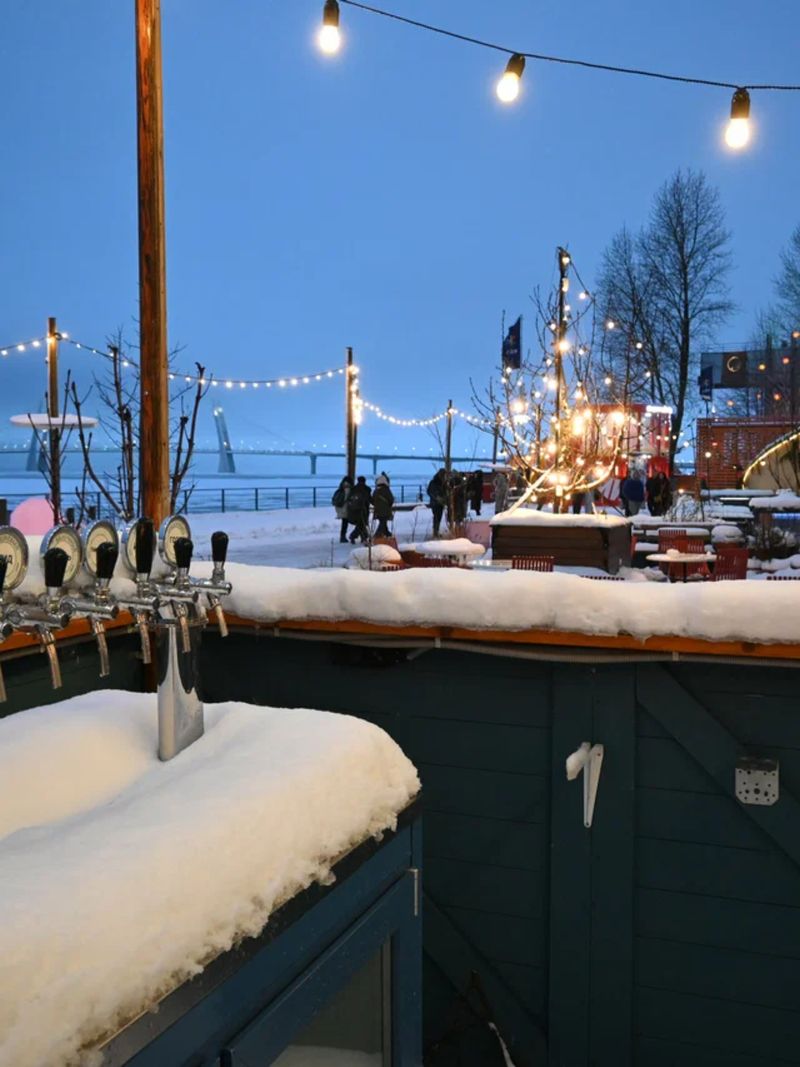 Ледовое поле на берегу залива впечатляет своими масштабами и открывающимися панорамами. Инфраструктура включает прокат инвентаря, фотозоны, туалеты, фудкорт, камеры хранения, бесплатный беспроводной интернет и устройства для зарядки гаджетов. Регулярно проходят тематические мероприятия: ледовые дискотеки, флешмобы и вечерние шоу-программы.