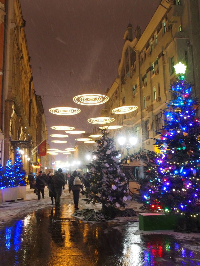 За Никольской прочно укрепилось негласное звание «улицы-светильника». Ощущение фантастического мира возникает благодаря бесчисленному множеству светодиодов, которые образуют над головой густую сверкающую паутину. Это сияющее пространство становится материальным воплощением новогоднего чуда. Весь проспект превращается в идеальную площадку для фотографирования и место, где действительно ощущается магия наступающего торжества.
