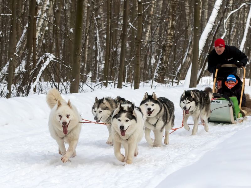 Особой популярностью пользуется зона хаски-парка, где можно пообщаться с дружелюбными собаками и прокатиться на настоящей собачьей упряжке.