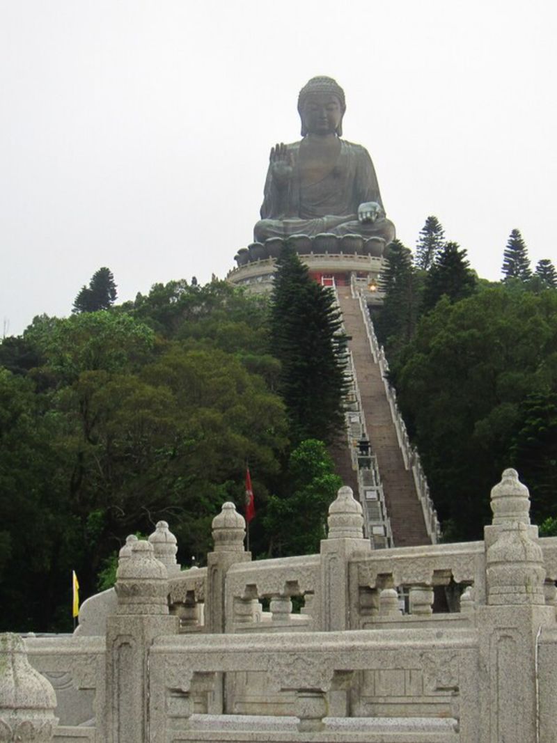На вершине горы Мук-Юэ на острове Лантау возвышается один из самых впечатляющих религиозных памятников Азии — бронзовая статуя Большого Будды. Тридцатичетырёхметровое изваяние, на создание которого ушло двенадцать лет, было установлено в 1993 году. Он отличается не только колоссальными размерами, но и необычной ориентацией — в отличие от традиционных канонов, лицо Будды обращено на север, в сторону Пекина.